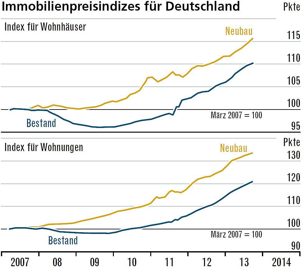 Die Einstiegspreise auf dem Wohnungsmarkt sind deutlich gestiegen. Wohneigentum gewinnt wieder an Wert. Das wiederspiegelt sich in den Immobilienpreisindizes, nachzulesen unter anderem im FOCUS vom 24.11.2013: